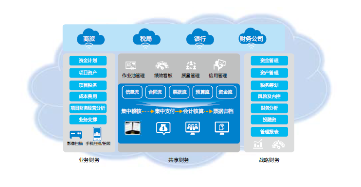 浪潮财务云,借助柔性共享解决集团管控盲点,提供精细、智能的全方位考核分析,通过影像+电子档案实现财务管理全程电子化,支持全球大共享的建设模式,并能引入第三方公共服务,打造财务共享混合云。最终,通过业务财务一体化,实现各层级协同应用。